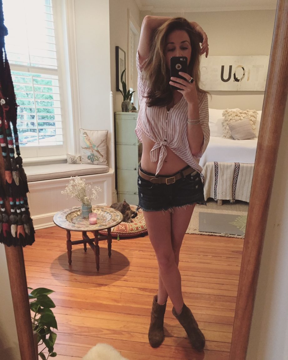 [Rails LA Thea blouse + Rag & Bone shorts in Doris, belt and boots.]